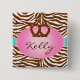 Name Tag Button for pastry chef or baker with cute chocolate pretzel and fun zebra background.