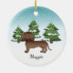Chocolate Smooth Coat Dachshund - Winter Forest Ceramic Ornament