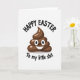 This card features a deep chocolate-brown spiral character centered on a bright white background, shaded with espresso-to-cocoa tones to look glossy and rounded. Big white oval eyes with small black pupils and a wide crescent grin with a tiny hint of teeth give it a flirty, teasing look, like it’s sharing an inside joke with someone close 🐰. Above the character, “HAPPY EASTER” sits in rounded black lettering that curves in an arc across the top. Below, a cheeky line reading “To my little shit” curves along the bottom in the same black style, turning the greeting into a mischievous note between friends or partners. The wide open space around the figure keeps attention on the character’s forward-facing gaze, which feels like it’s directed straight at the recipient 🐇. Soft shading along the spiral’s edges adds depth, while the lighter highlights suggest a smooth, candy-like sheen. The words stay in black while the character remains in layered brown tones, centered neatly between the top and bottom text. The spiral ends in a gentle peak, with the face placed on the front curve and the letters arcing above and below it.