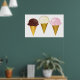 Chocolate, Vanilla & Strawberry Ice Cream Cones Poster