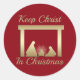 Faux couleur or simple scène de nativité, libellé Garder le Christ à Noël, est montré contre un arrière - plan rouge profond - que vous pouvez changer à n'importe quelle couleur vous préférez.