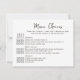 Carte de réponse classique élégante et blanche pour un mariage avec des options de menu complètes au dos pour jusqu'à 4 invités. Permettez à vos invités de sélectionner 1 entrée, 1 plat principal et 1 dessert ainsi que le nombre de menus enfants dont ils ont besoin avec ces cartes de réponse personnalisables. Cette conception est prévue pour jusqu'à 3 options de repas, pour plus ou moins de choix, veuillez consulter les variations dans la collection ou me contacter.