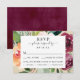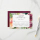 Complétez votre collection avec cette carte de réponse de mariage coordonnée, dotée d'une bordure florale aquarelle rose et bourgogne et de détails de script élégants. Comprend un espace pour les noms, la réponse de présence et une section pratique de sélection de repas. Parfait pour les mariages floraux d'automne, de jardin ou de vignoble, et facile à personnaliser.
