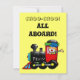 Choo choo train 1st birthday party invitations, the background colour is customizable. You can further personalize this design by pressing the "customize it" button.