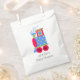Colourful baby shower favour bag with a graphics of a red, blue, green, and yellow choo choo train engine. Personalize the black custom text for your baby shower event. Matching baby shower products are available.