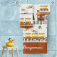 Do you have a little choo choo train fan? This custom bathroom bath towel set is perfect! Towel set has a pattern of a bright, colourful steam engine with passenger cars on a railroad track. There are also buildings, trees, and a place to add the first name of your young boy or girl. (Name may be removed per your preference.)