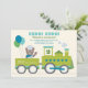 Choo Choo Train Teal Bear Birthday Party Invitation