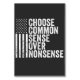 Choose common sense over nonsense, political pun, American flag, Democratic values, Kamala Harris, Tim Walz, political humour, election slogan, political satire, Democrat messaging, political campaign, common sense politics, American democracy