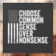 Choose common sense over nonsense, political pun, American flag, Democratic values, Kamala Harris, Tim Walz, political humour, election slogan, political satire, Democrat messaging, political campaign, common sense politics, American democracy