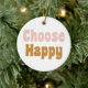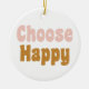 'Choose Happy' Retro Lettering in Pink and Gold Holiday Ornament