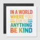Brighten the world with kindness through this cheerful "In A World Where You Can Be Anything, Be Kind" greeting card, illustrated in vibrant, colourful lettering. This uplifting and motivational artwork promotes positivity, empathy, and compassion, making it a perfect design for spreading good vibes wherever you go. Ideal for teachers, students, mental health advocates, or anyone who believes in kindness as a superpower.