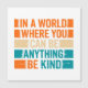 Brighten the world with kindness through this cheerful "In A World Where You Can Be Anything, Be Kind" greeting card, illustrated in vibrant, colourful lettering. This uplifting and motivational artwork promotes positivity, empathy, and compassion, making it a perfect design for spreading good vibes wherever you go. Ideal for teachers, students, mental health advocates, or anyone who believes in kindness as a superpower.