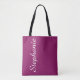 This trendy rich berry and white personalized tote bag features your choice of colour background and name in jumbo modern typography. Name is only on one side in case privacy is desired. An elegant gift for members of your bridal party. All Rights Reserved © 2019 Alan & Marcia Socolik.