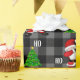 Funny Christmas Santa Claus dabbing design on black plaid pattern background. Christmas wrapping paper