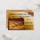 A view of wooden risers onstage where the members of the chorus will be taking their places to give a concert is the theme for this invitation to attend the performance. The wood-panelled background on the reverse side can be removed or left as is, and the lines of text are easily edited to suit the specifics of the occasion
