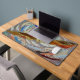 Ce tapis de bureau unique est décoré d'une chouette volante et d'une mosaïque de lune aux couleurs riches. Mosaïque originale © Michele Davies.