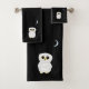 Chouette blanche élégante et lune de croissant sur l'ensemble de serviettes de bain noir. Serviettes élégantes et modernes. L'image peut être customisée.