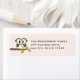 Annoncez l'arrivée de votre petite fille douce avec ces adorables étiquettes d'adresse de retour de bébé avec un hibou bébé vert et marron perché sur une branche d'arbre portant des couches avec une épingle de couche rose sur l'arrière - plan pois polka. Oeuvre © Chrissy H. Studios, LLC. Tous droits réservés.