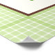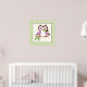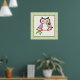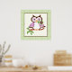 Chouette de printemps mignonne sur une affiche de branche, avec un chouette de printemps mignon en violet et brun foncé tenant une fleur dans son bec (bec) sur une branche et une bordure verte plaid. Un design adorable pour les amateurs de chouettes, parfait pour la décoration en pépinière. Oeuvre de Trina Clark.