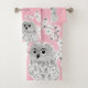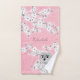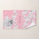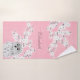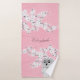 Jolie floraison de cerisiers blancs et une chouette chouette sur un arrière - plan parties scintillant rose. Customisez cette serviette mousseuse ceinturée avec votre nom.