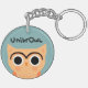 UnibrOwl. Dessin humoristique de Chouette avec un Unibrow. Ce drôle de porte - clé de hibou fait un cadeau original et humoristique ! ©Jenn Inashvili