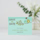 Whimsical enregistrer les cartes postales d'invitation de date avec deux chouettes mignons assis sur une branche avec un coeur dans une bulle de discussion au-dessus d'eux. Arrière - plan dans les nuances bleu oeuf de robin. Personnalisé avec vos informations dans l'espace prévu à cet effet. Obtenez les timbres-poste correspondants ci-dessous :