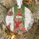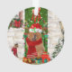 Chow Chow Dog assis à l'extérieur de la maison décorée avec la couronne de Noël, sapin de Noël est une idée cadeau de Noël parfait pour les amoureux de les chiens.