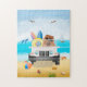 chow chow Dog Driving on Beach Jigsaw Puzzle