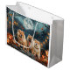 Unleash the spooky spirit with this eerie Halloween design featuring a pack of dogs under a dark, moonlit sky, surrounded by flying bats and glowing pumpkins. Perfect for those who love a touch of frightful fun with their furry friends!