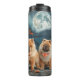 Unleash the spooky spirit with this eerie Halloween design featuring a pack of dogs under a dark, moonlit sky, surrounded by flying bats and glowing pumpkins. Perfect for those who love a touch of frightful fun with their furry friends!