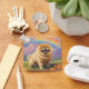 A personalized Chow Chow memorial keychain with a painting of a happy Chow Chow on a serene heavenly hill with a beautiful rainbow overhead. Symbolizing the Chow Chow has passed the rainbow bridge to doggy heaven. Personalize it with your own Chow Chow dog's name or any other text on the back side of the keychain. Makes a wonderful memorial gift for any Chow Chow dog lover.