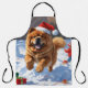 A fluffy Chow Chow runs joyfully through the snowy winter scene, wearing a festive red Christmas hat. This charming design highlights the breed’s thick coat, lion-like mane, and dignified personality while capturing the warmth and spirit of the holiday season. A heartwarming winter moment full of festive charm.