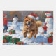 A fluffy Chow Chow runs joyfully through the snowy winter scene, wearing a festive red Christmas hat. This charming design highlights the breed’s thick coat, lion-like mane, and dignified personality while capturing the warmth and spirit of the holiday season. A heartwarming winter moment full of festive charm.