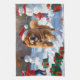 Chow Chow Running in Snow with Christmas Hat Kitchen Towel