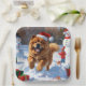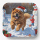 Chow Chow Running in Snow with Christmas Hat Paper Plate