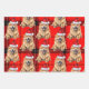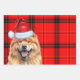An adorable Chow Chow dog is ready for the holiday season wearing a cute Santa hat and paired with a red holiday plaid on this set of gift wrap for the dog lover.
