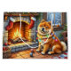A festive Christmas artwork featuring a fluffy Chow Chow sitting beside a glowing fireplace adorned with stockings and twinkling Christmas lights. This cozy holiday scene beautifully captures the Chow Chow’s regal charm and gentle spirit, making it a perfect choice for dog lovers and seasonal home decor. Add warmth, joy, and a touch of fluffy elegance to your Christmas celebration with this heartwarming art piece.