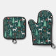 Chrestmas Theme Pattern Deer & Trees Oven Mitt & Pot Holder Set