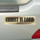 Christ is Lord bumper sticker on a gold tone faux metallic background, from the Bible verse Philippians 2:11