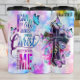 This uplifting graphic powerfully declares, "I CAN DO ALL THINGS THROUGH Christ WHO STRENGTHENS ME," with "Christ" highlighted in elegant script. A prominent cross, inscribed with "Faith" and adorned with colourful flowers and butterflies, anchors the right side. Set against a dreamy pastel background, the "PHILIPPIANS 4:13" citation reinforces this message of divine empowerment and spiritual transformation.