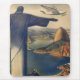 Vintage illustration travel and transportation image travelling by airplane to Rio De Janeiro, Brazil. Flying past Christ the Redeemer, a statue of Jesus Christ.