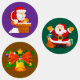 Cette image montre une collection d'autocollants ronds de Noël avec des motifs festifs, dont des bougies, des arbres de Noël décorés avec des cadeaux, et des couronnes de Noël. Les motifs colorés sont parfaits pour la décoration, l'étiquetage ou l'emballage cadeau pendant la période des fêtes.