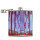 The pipes of the Rieger organ in the Christchurch Town Hall, New Zealand, reflect the blue lighting from the spots on the stage below, which contrasts with the red wood of the organ case. On this flask, they make the perfect gift for a musician, especially an organist.