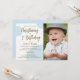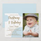Christening 1st Birthday Photo Blue Gold Custom Invitation