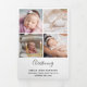Photo Thank You card to send to your family and guests following your little one's christening or baptism. The design has a photo collage on the front with baby's name, date and venue. On the back you can add your custom headings and text, such as godparents and thank you message. As you open the card there is a portrait photo on the flap and 3 further photos inside. Your pictures are displayed in vertical and square formats. If you have any problems with placement, try cropping the photo to portrait/square (as appropriate) and re-upload.