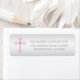 Jolie adresse de retour étiquettes avec croix rose et faux diamant au milieu. Couleur Arrière - plan avec gris foncé / argent. Préfet pour le baptême, le baptême, la communion ou la confirmation de la fille.