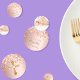 A rose gold background decorated with confetti. Personalize and add a date and name/event. Dark rose gold coloured letters. Some confetti chips with name and date, others with a cross. Add your own photo on two of the chips.
