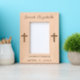 Celebrate the Sacred Moment of Christening with a Personalized Etched Frame. Capture the joy and significance of a loved one's christening with this beautiful etched wood picture frame. Thoughtfully designed to honour this special milestone, this frame is the perfect keepsake to cherish the moment forever. Add the name of the christened individual at the top of the frame for a personal and meaningful touch. The bottom of the frame is etched with the word "Christened" and includes a space to customize the date of this sacred event. A simple, timeless cross is etched into the frame, symbolizing faith and spiritual grace. Perfect for Christening gifts for babies, children, or adults , Keepsakes for godparents, grandparents, and sponsors Display this frame in a nursery, living room, or special place in your home to keep the memory of this blessed day alive. Edit text from the product page or to change font style, use the design tool.