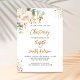 For the christening of 2 two children. A white background decorated with eucalyptus greenery, a white rose, and golden leaves and faux gold glitter drops. Personalize and the childrens names and ceremony details. Black and golden coloured letters. Gender neutral.