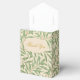 The flap is green. The background pattern is the vintage wallpaper pattern "Willow Bough" designed by William Morris (1834–1896 ), now in the public domain,, that has willow branches with green leaves.